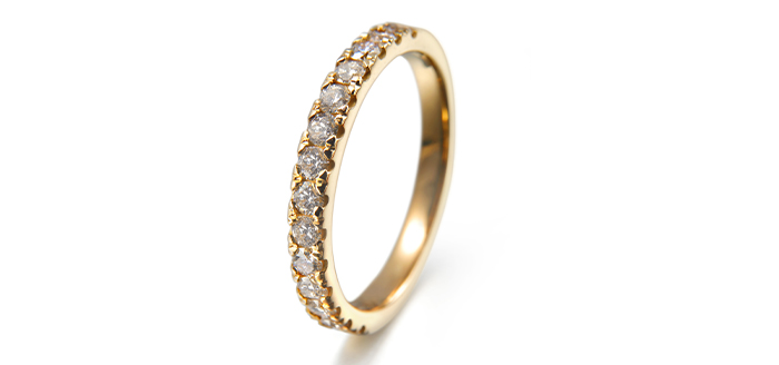El anillo Forever es una pieza única de orfebrería diseñada para momentos especiales. Cuenta con 14 diamantes de talla brillante, que simbolizan la durabilidad y denotan elegancia; y están recogidos en una sencilla pero elegante montura de oro amarillo que revela sofisticación y buen gusto.