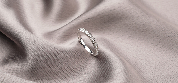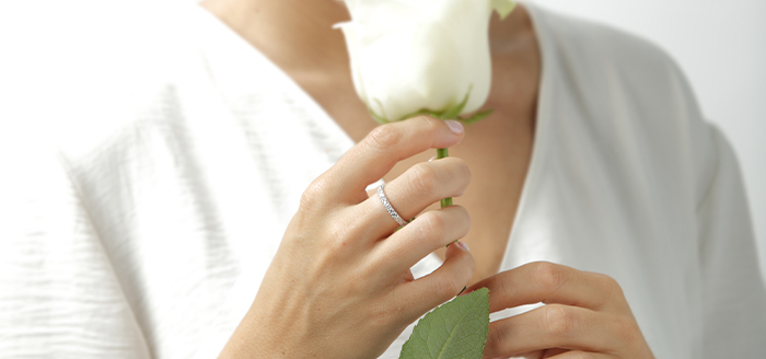La delicadeza del anillo en oro blanco hace de él la joya perfecta para consolidar un vínculo amoroso.  Se trata de un material puro, especial, cuyo color transmite la serenidad de estar con la persona correcta, y cuya resistencia evoca lo estable y lo eterno: al igual que el amor, cuando es verdadero, dura para siempre.